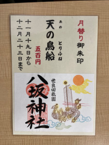 月替り御朱印【天の鳥船】 2021.11.18 2021.11.18 輸送希望の方はお問い合わせメールからお願いします。 info@yasaka-jinja.jpからお送り致しますのでドメイン解除をお願いします。